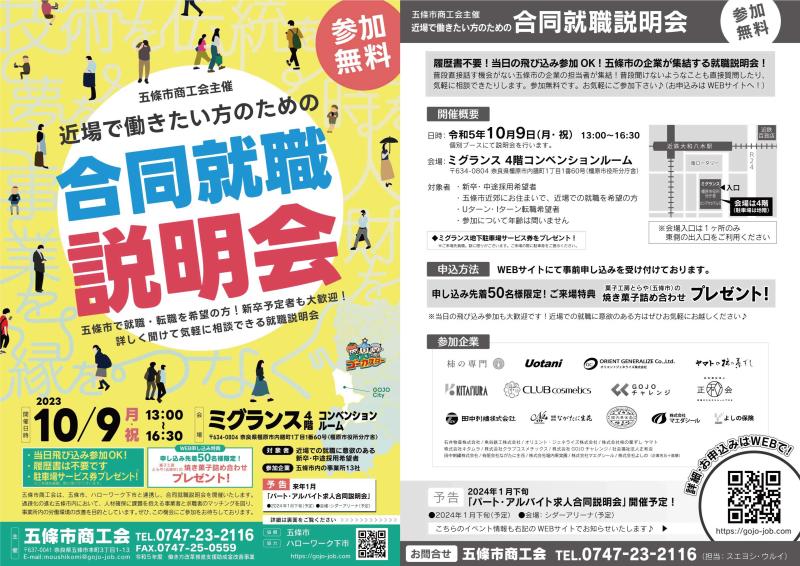 9/20(金)に五條市役所内で合同就職説明会を開催します♪
